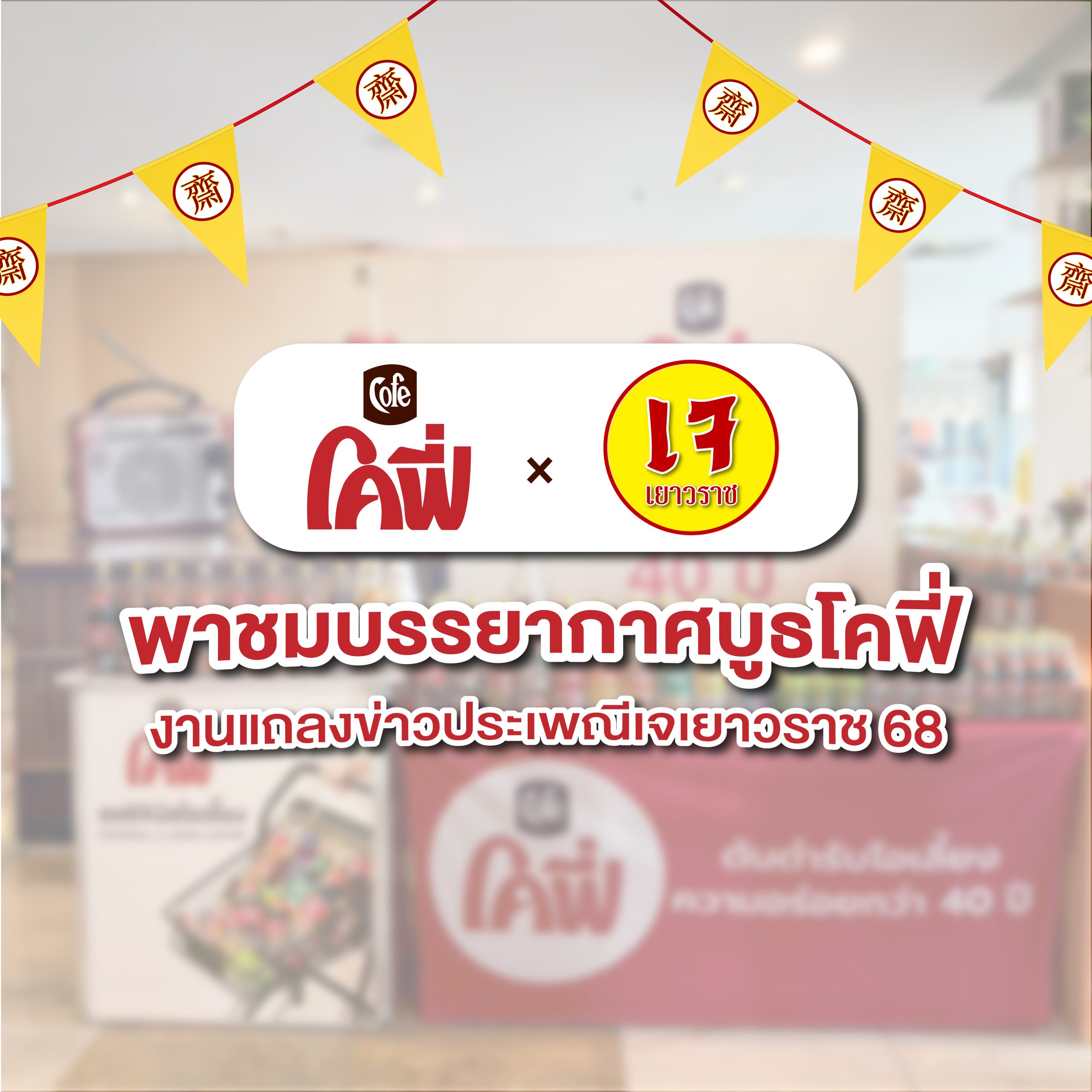 เพื่อเตรียมต้อนรับเทศกาลกินเจประจำปี ซึ่งในปีนี้ “โคฟี่” ได้ร่วมเป็นหนึ่งในผู้สนับสนุนงาน พร้อมนำความหอมเข้มข้น และเอกลักษณ์เฉพาะของเครื่องดื่มโคฟี่